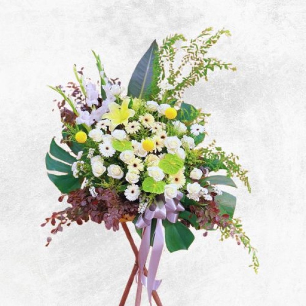此款花籃由花藝師精心搭配製作,展現出對先人最誠摯的懷念與致敬。產品附設吊唁卡牌,方便表達心中寄語,適合不同年齡層於追思場合中真摯呈現。